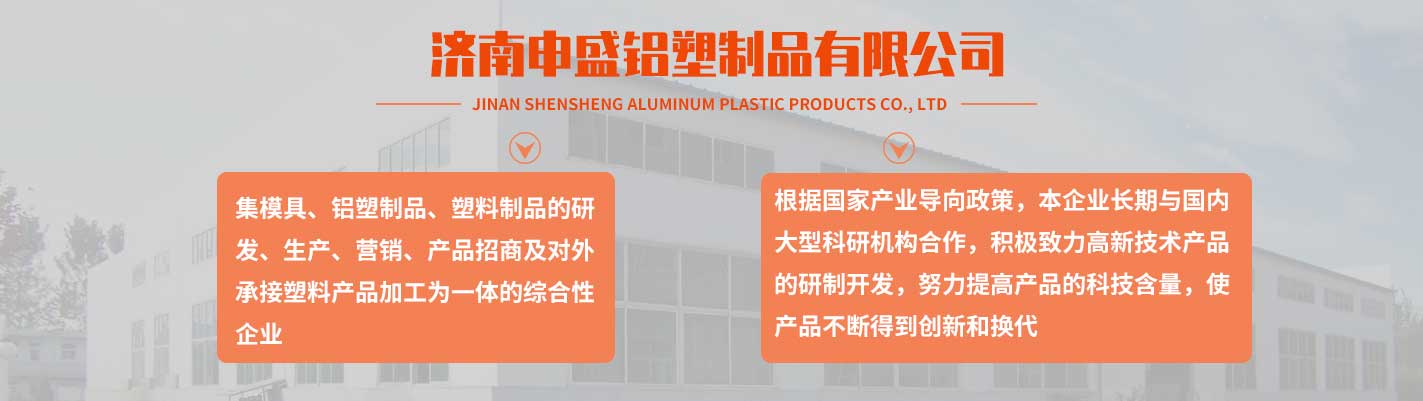 濟(jì)南申盛鋁塑制品有限公司,座落在濟(jì)南市長清區(qū)工業(yè)園,占地十余畝。是一家集模具、鋁塑制品、塑料制品的研發(fā)、生產(chǎn)加工、營銷、產(chǎn)品招商、對外承接塑料產(chǎn)品加工為一體的綜合性企業(yè)。根據(jù)國家產(chǎn)業(yè)導(dǎo)向政策,本企業(yè)長期與國內(nèi)大型科研機(jī)構(gòu)合作,積極致力高新技術(shù)產(chǎn)品的研制開發(fā),努力提高產(chǎn)品的科技含量,使產(chǎn)品不斷得到創(chuàng)新和更新?lián)Q代,市場銷量走在同行業(yè)的前列。